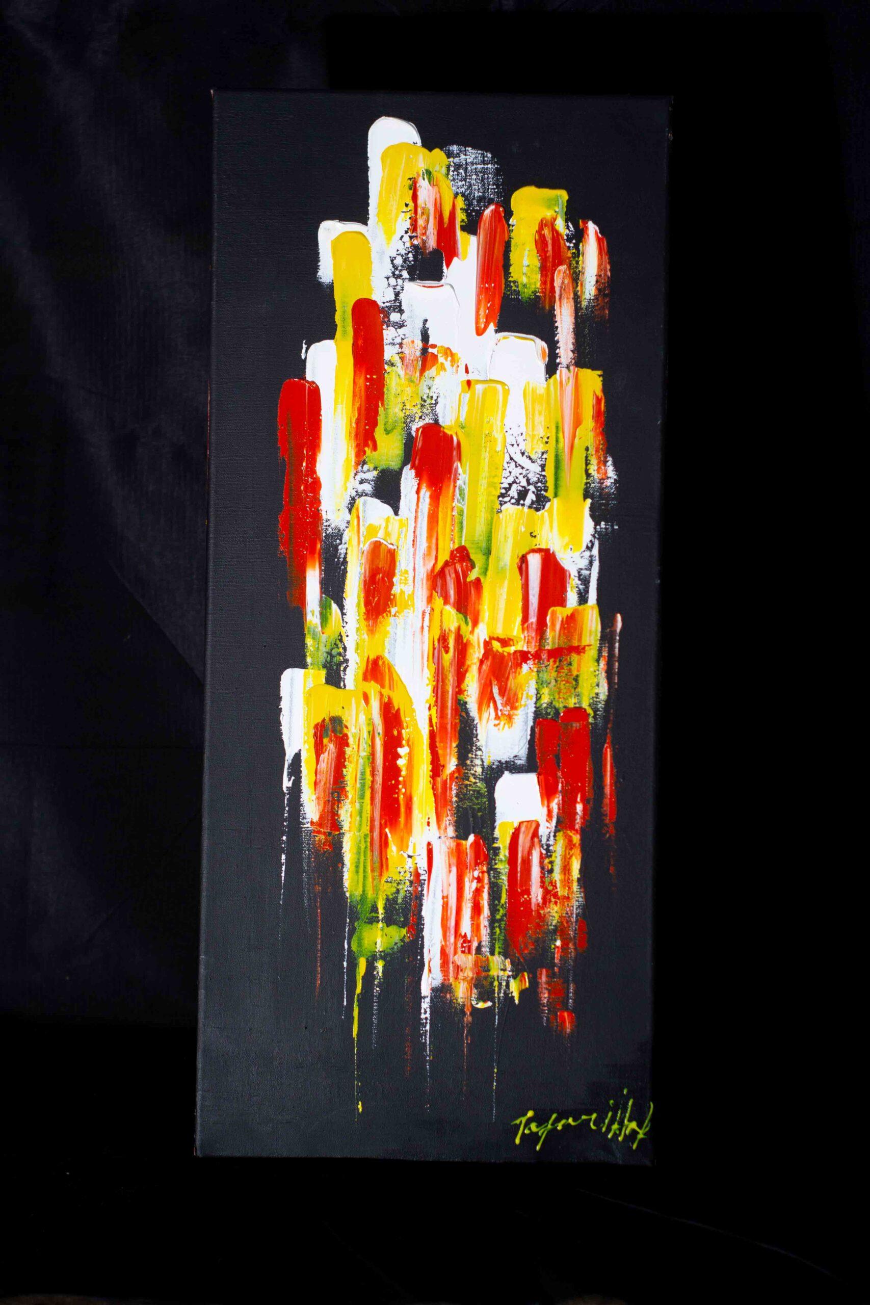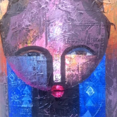 It delves into the decolonization of Nigeria's history through the depiction of African women with exceptionally long necks. These women symbolize the strength, grace, and resilience of the African spirit, transcending the confines of colonial narratives and embracing a powerful identity. In this series, each woman's face, from the nose up, is concealed by a futuristic mask. These masks serve as a representation of the dualities faced by African women—their hidden struggles, the silencing of their voices, and the preservation of their cultural heritage. Incorporated into the upper part of each mask are elements inspired by African artifact mask sculptures, emphasizing a connection to the ancestral past and the importance of cultural memory. The portrait is intentionally cut at the chest level, where a blend of futurism and technology manifest as cloth. This element symbolizes the merging of traditional African attire with futuristic materials, suggesting a transformative power that emerges when the past and the future collide. It represents the notion that progress and technological advancements can be achieved without sacrificing cultural heritage, ultimately fostering a sense of pride and empowerment. The series draws inspiration from the previous "Awelewa Series" which was itself influenced by Fela Anikulapo's song titled "Lady." "Awelewa," meaning "beautiful one" in Yoruba, celebrates the beauty and strength of African women, encouraging them to reclaim their stories and redefine their identities on their own terms. This new series, "The Resilient Spirits: Awelewa Awakens," builds upon these ideas and explores the process of decolonizing Nigeria's history through the lens of female empowerment. These paintings aim to challenge the dominant narratives that have marginalized African voices and seeks to reclaim the richness and complexity of the Nigerian experience. By incorporating elements of abstract realism, futuristic aesthetics, and traditional symbolism, the series aims to spark conversations about identity, power, and the decolonization of historical narratives.
